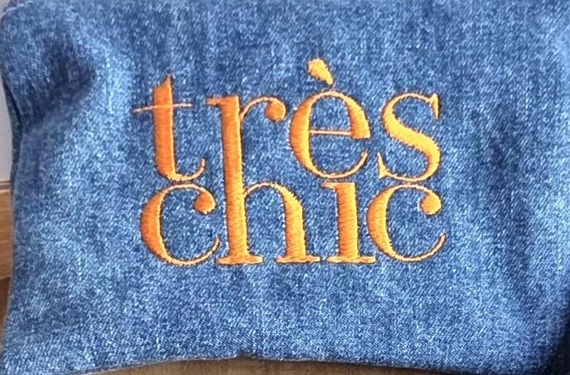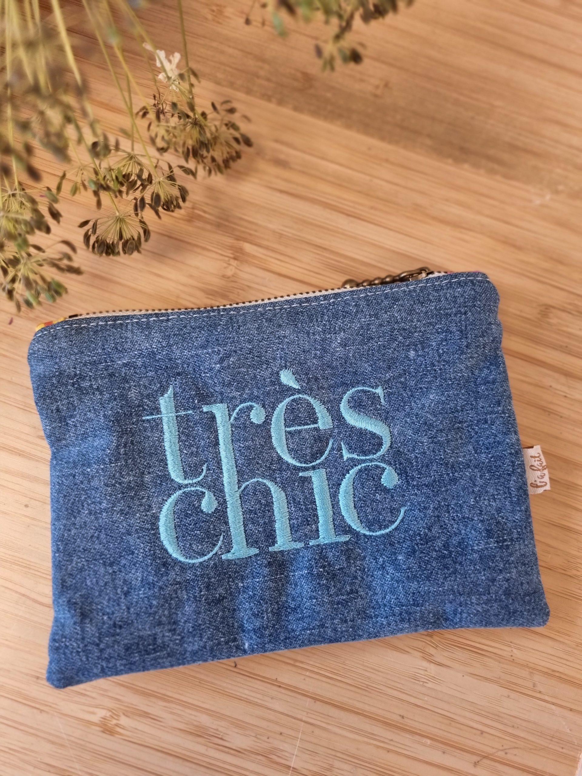 Trousse en jean brodée Très chic